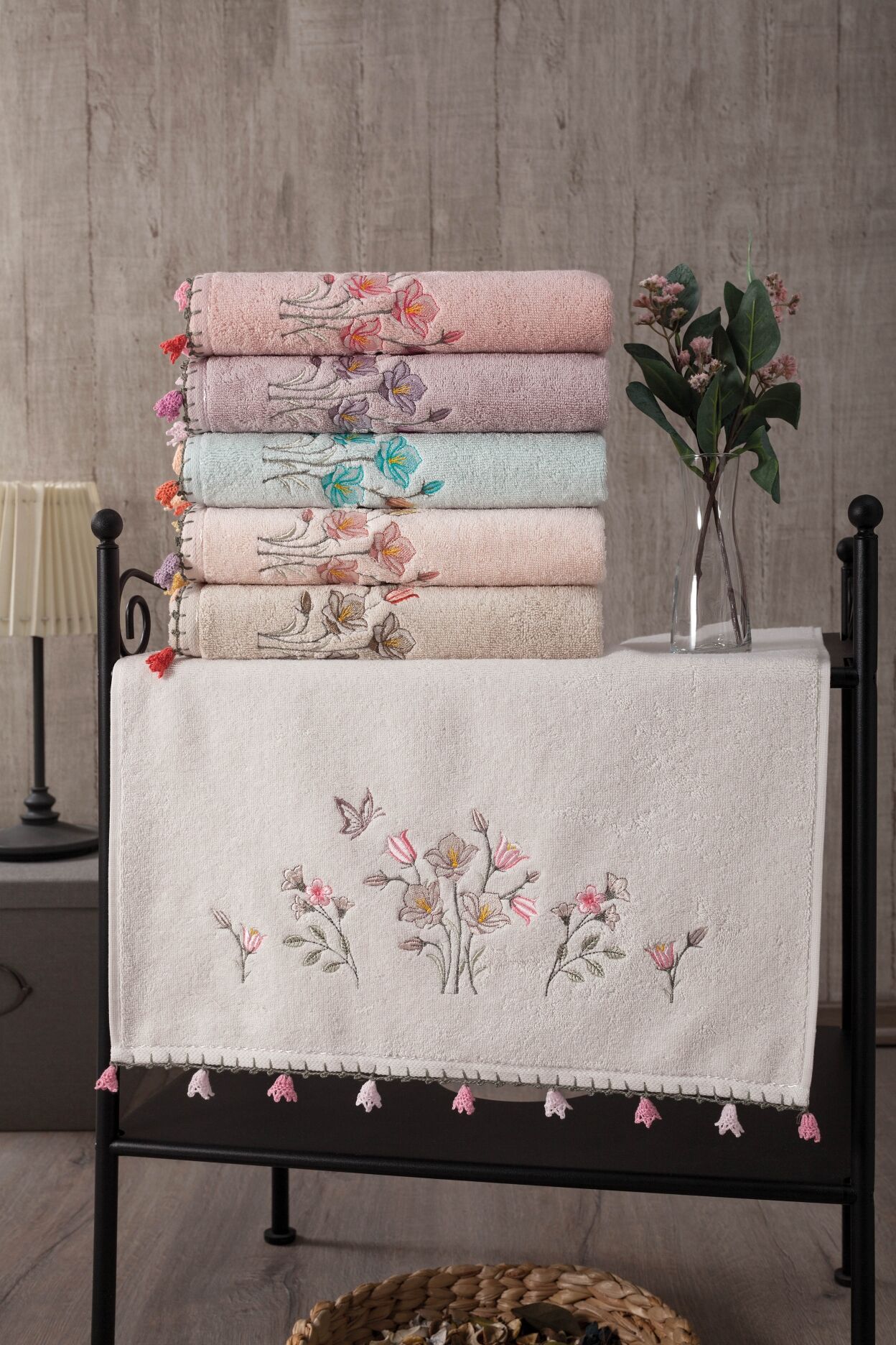 Kadife Etamin Saçaklı Havlu 6'LI